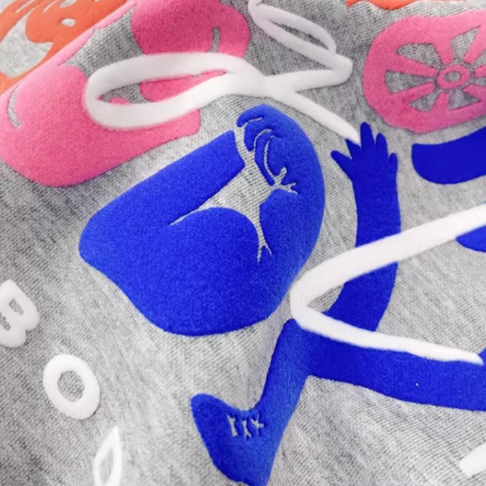 答:植絨圖案的觸感非常柔軟舒適,就像撫摸天鵝絨一樣,完全不會有任何刺癢或不適感。它為衣物增添了一種溫暖而親膚的感覺,無論是印製在T恤還是衛衣上,都能提升整體的穿著體驗。