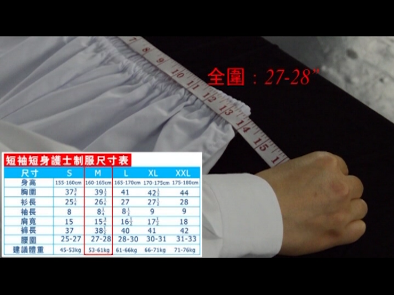 如何量度護士服尺寸(兩件套) 點量護士服尺寸