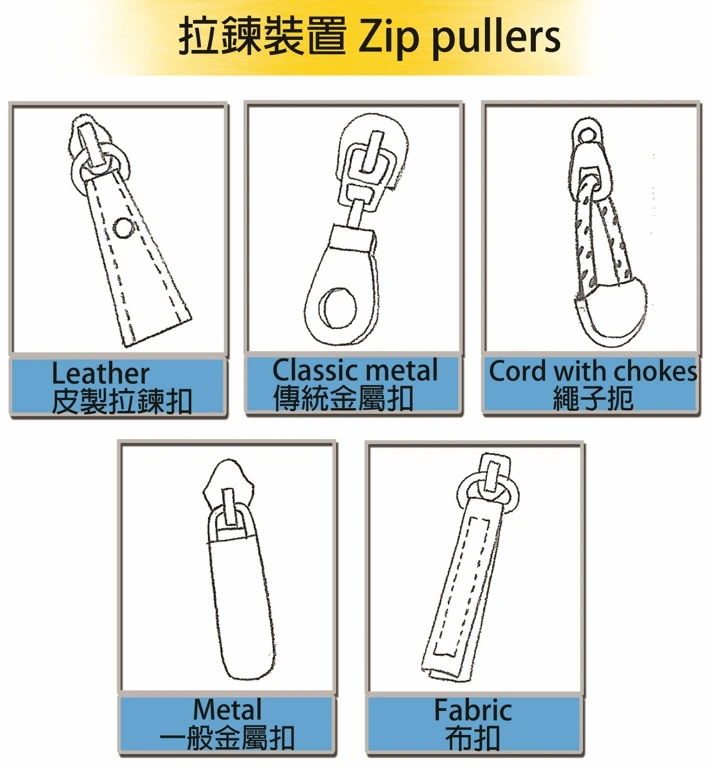 - 啪鈕貼袋:一種用啪鈕固定的小口袋,方便放置隨身物品。