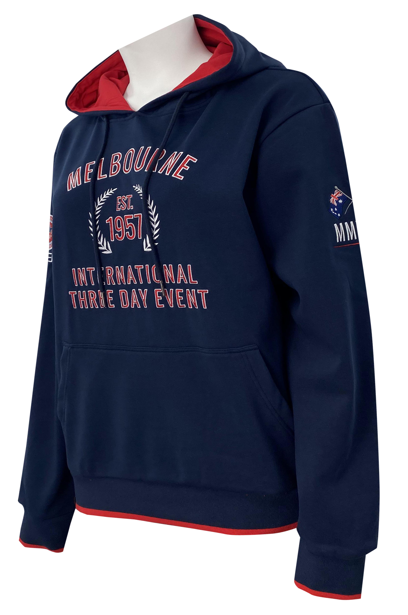 訂做寶藍色連帽衛衣 設計帽內襯紅色 抽繩衛衣 衛衣訂做工廠 撞色雙層帽 國際邀請賽活動 馬術 制服 Z557