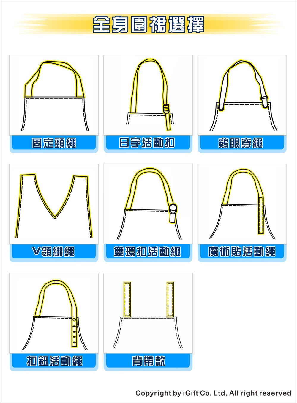- 選擇合適的圍裙,不僅能保護衣物,更能提升工作效率,展現專業形象。