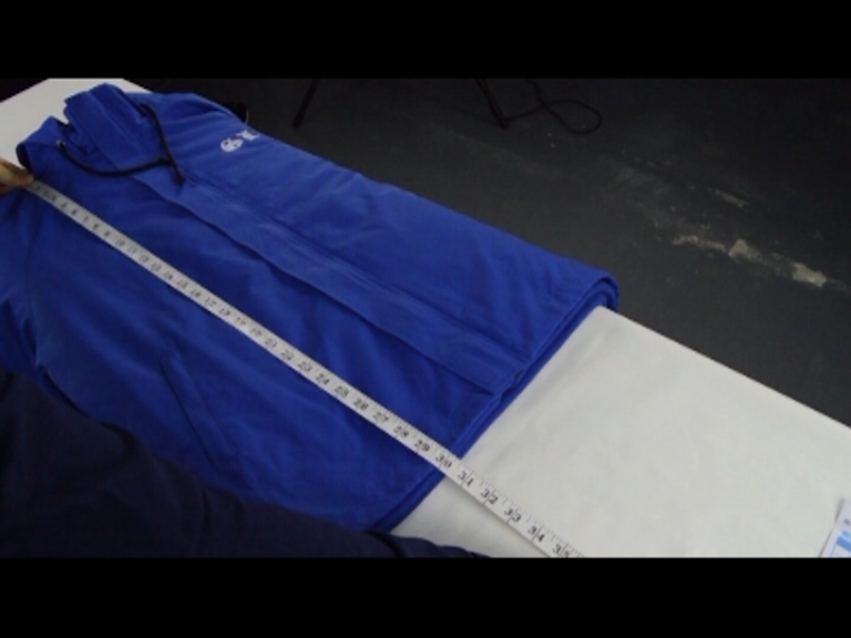 從肩為頂部開始量起到風衣下擺,將尺拉直量度