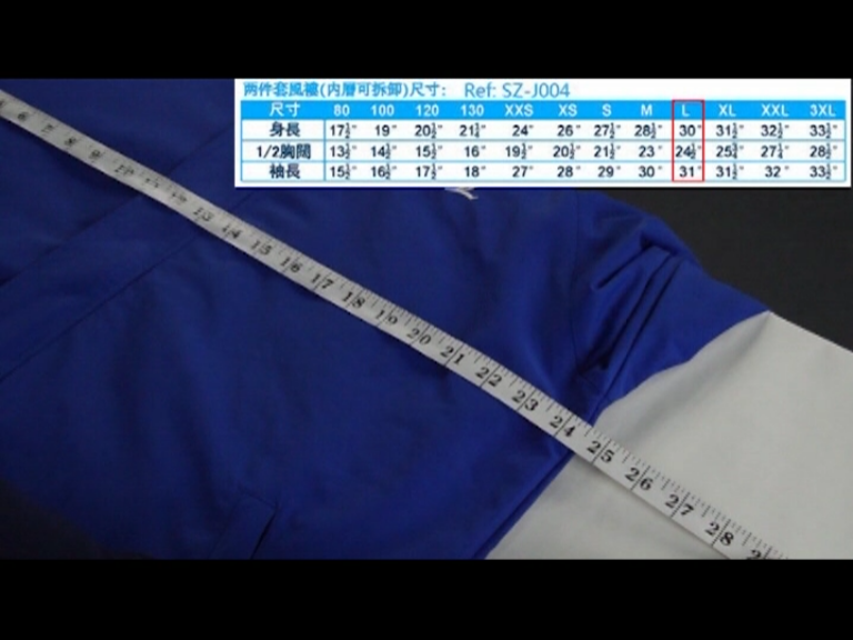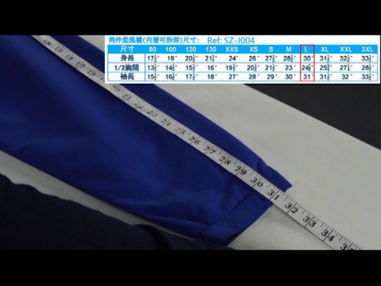 得出袖長尺寸為31’’