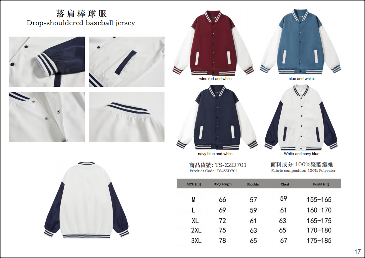 [網上下單棒球褸]|撞色袖設計|現貨主推落肩棒球服 TS-SKBJ029
