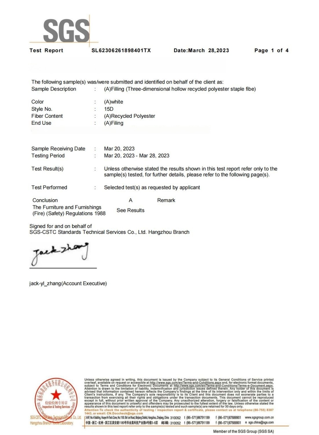 - 高密度聚酯纖維: 一種高彈性、不易變形的填充材料,常用於枕芯、抱枕等填充物。