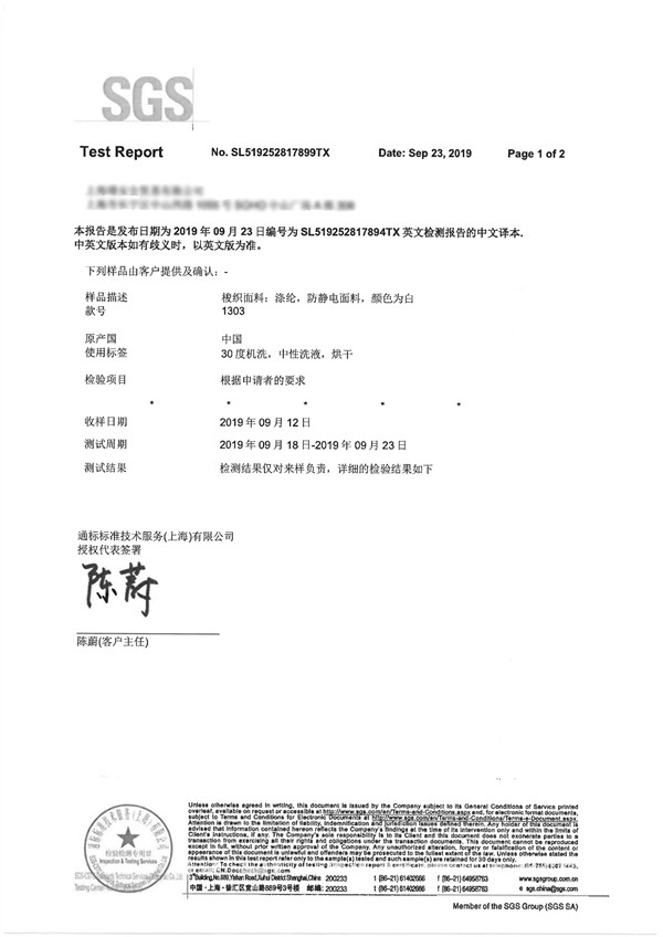 | 洗滌程序: 機洗85華氏度,總負荷1.8kg (1號陪洗布+試樣),中性洗滌劑,常規程序,常規翻轉烘乾。 | ||