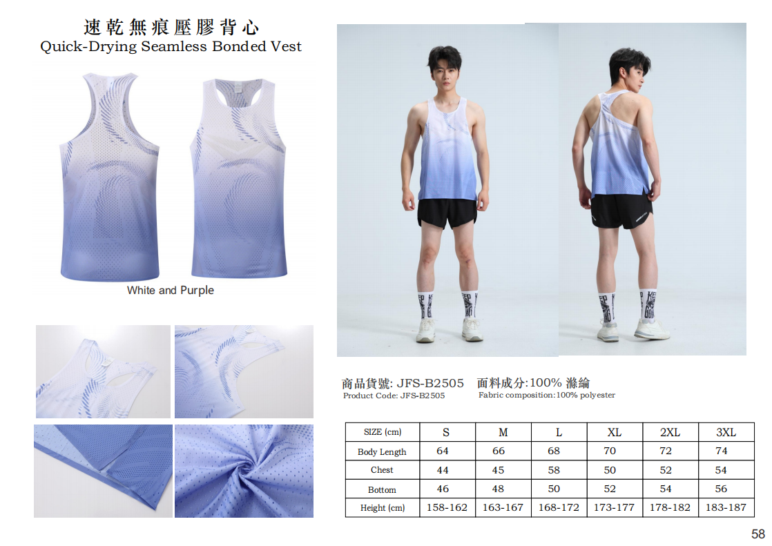 【訂造印花速乾跑步背心】|工字背白紫漸變設計|極致透氣機能款