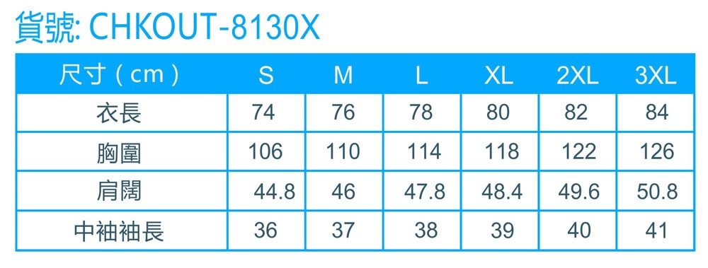 CHKOUT-8130X 撞色領廚師服,採用高品質 滌綸混紡布料 製成,柔軟舒適,透氣吸汗,耐用耐洗,不易褪色。