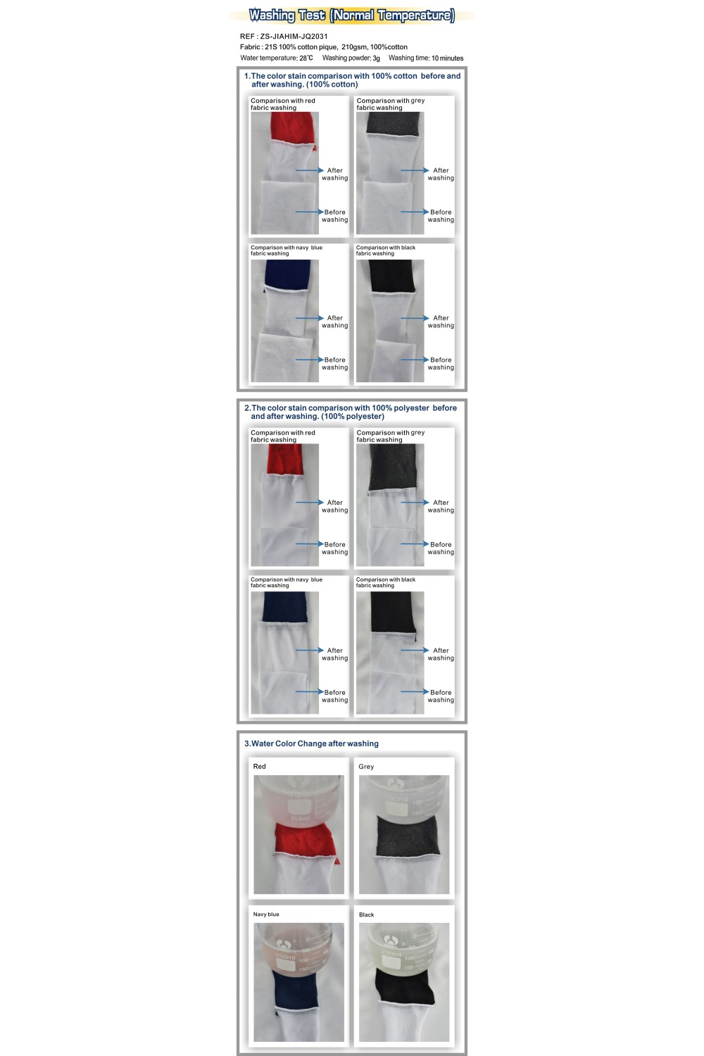 Washing Test (Normal Temperature) REF:ZS-JIAHIM-JQ2031 21S 100%cotton pique,210gsm 100%cotton