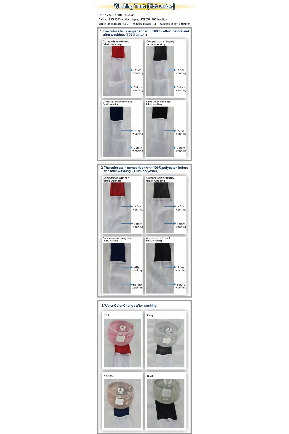 Washing Test (Hot water) REF:ZS-JIAHIM-JQ2031 21S 100%cotton pique,210gsm 100%cotton