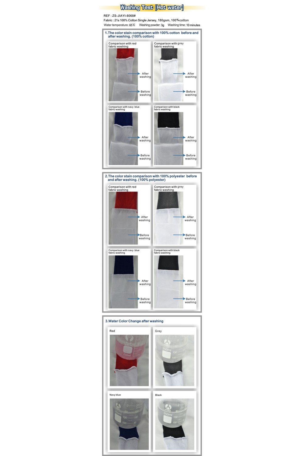 Washing Test (Hot water) REF:ZS-JIAYI-8068# 21s100%cotton single Jersey 180gsm 100%cotton