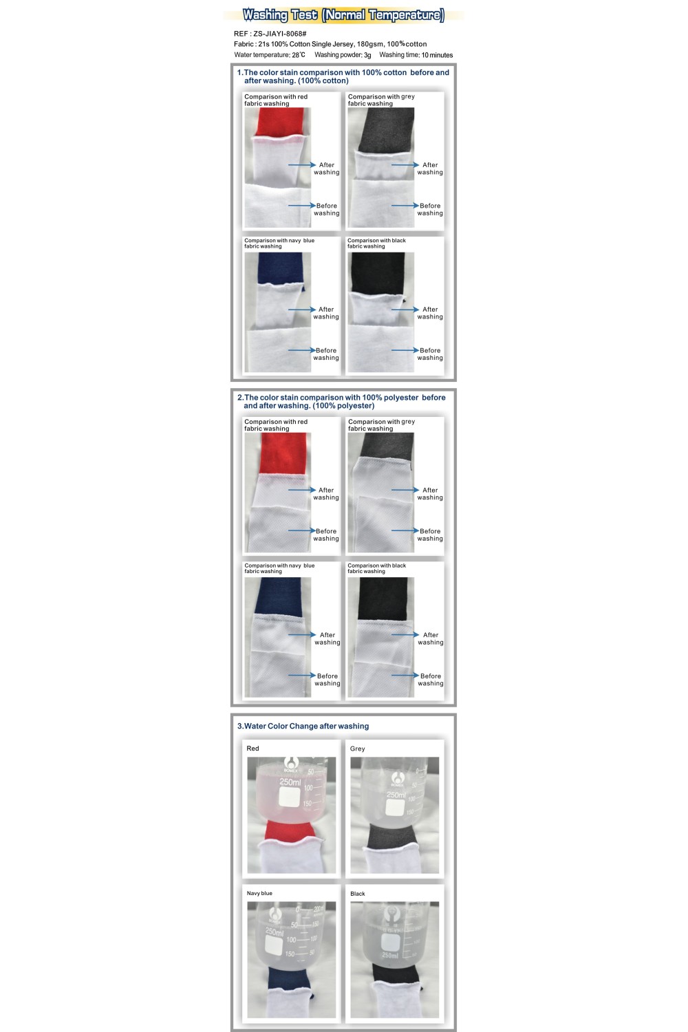 Washing Test(Normal Temperature)REF:ZS-JIAYI-8068# 21s100%cotton single Jersey 180gsm 100%cotton