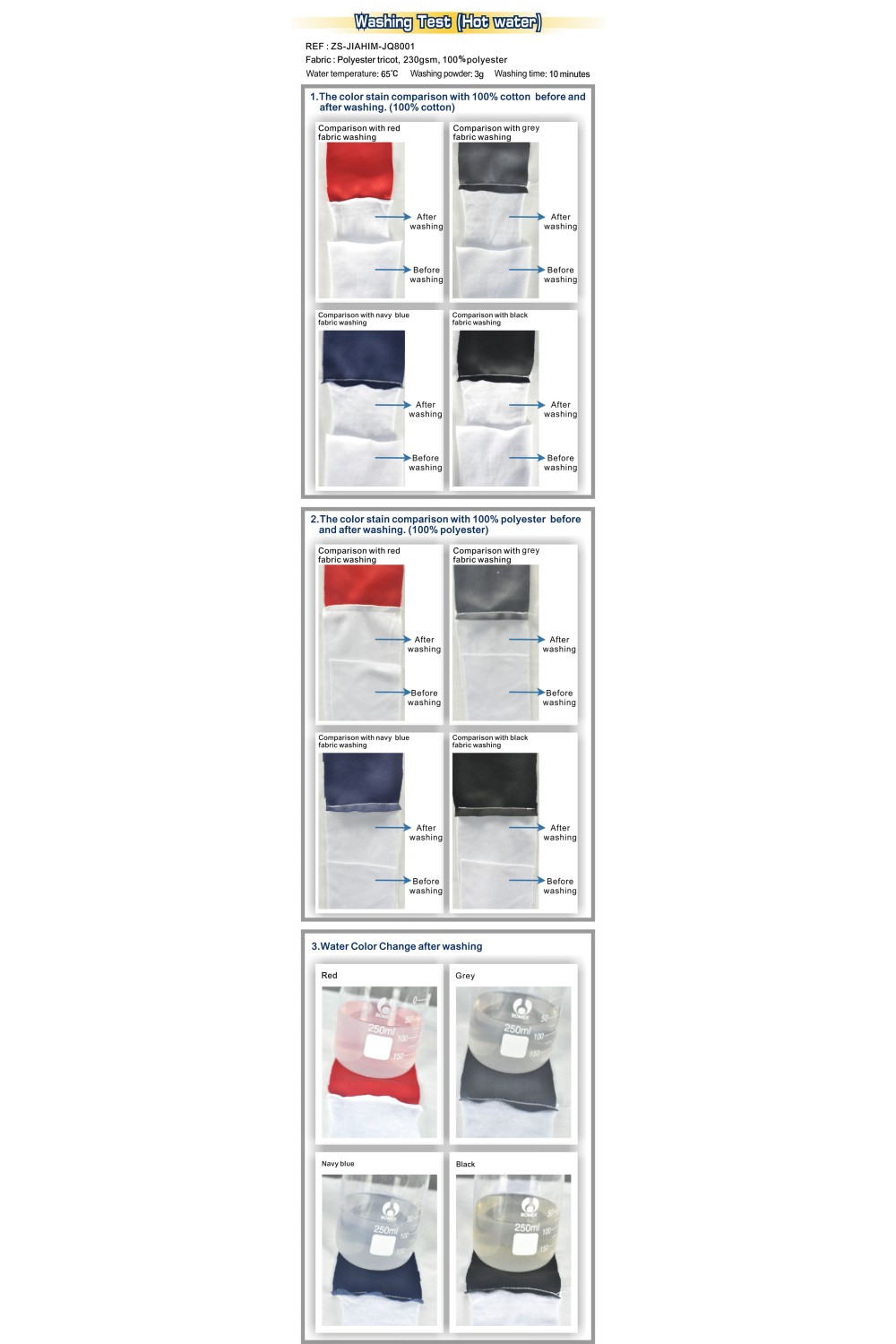 Washing Test(Hot water)REF:ZS-JIAHIM-JQ8001 polyester tricot,230gsm 100%polyester