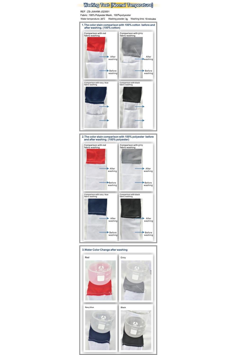 Washing Test(Normal Temperature) REF:ZS-JIAHIM-JQ3001 100%polyester Mesh 100%polyester