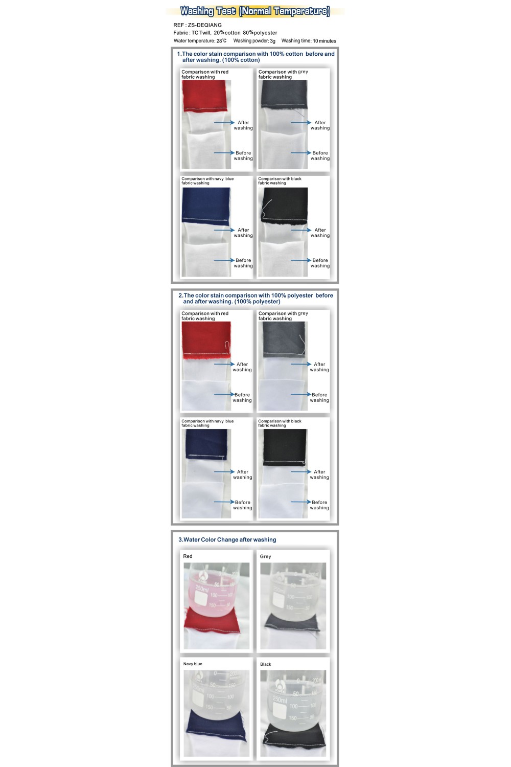 Washing Test(Normal Temperature) REF:ZS-DEQIANG-GX001# TC Twill, 20%cotton 80%Polyester