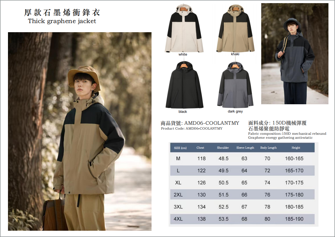 [網上訂購石墨烯衝鋒衣]|拼色高科技保暖内胆|現貨主推輕盈防風防水外套