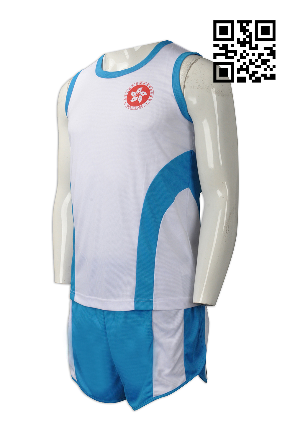 WTV136 自訂休閒運動套裝款式 訂做背心運動套裝款式 羽毛球 隊衫 製造運動套裝款式 運動套裝製衣廠 白色衣服 藍色褲子