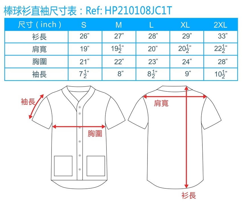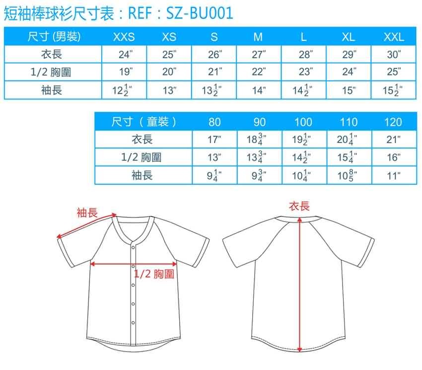 - 測量方法: 由於棒球服多為拉克蘭袖(Raglan Sleeve),請從領口側邊的車縫線開始,沿著袖子上方一路測量至袖口的末端。
