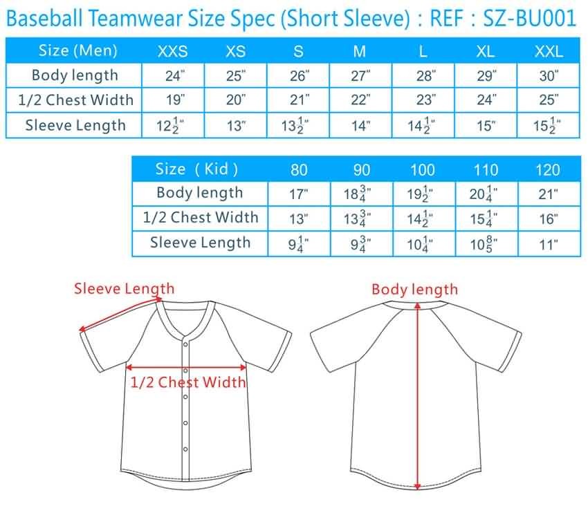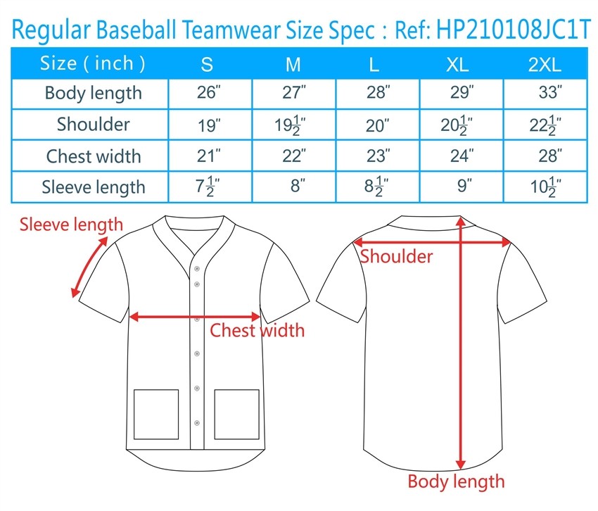 4.Regular Baseball Teamwear Size Spec