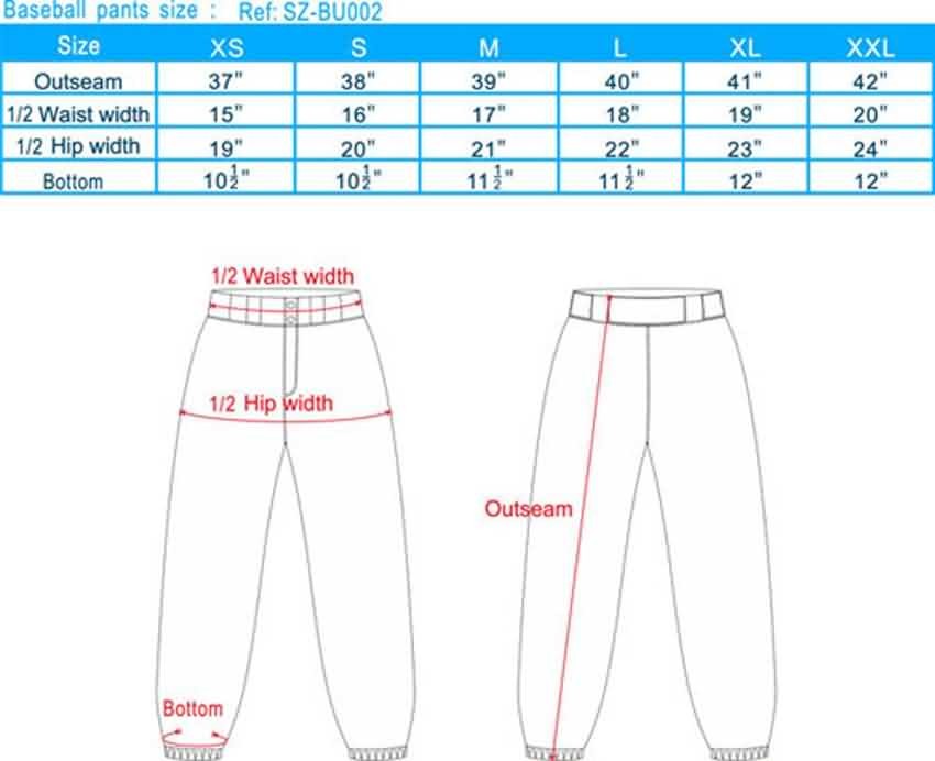 2. Baseball pants size