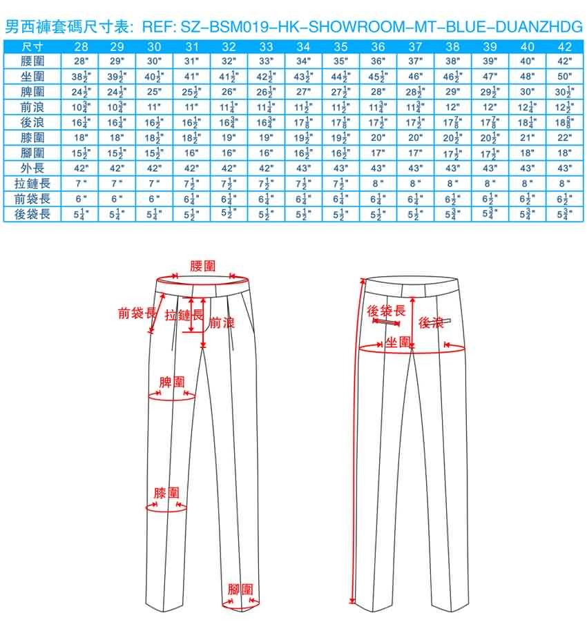 男西褲套碼尺寸表:REF:SZ-BSM019-HK-SHOWROON-MT-BLUE-DUANZHDG