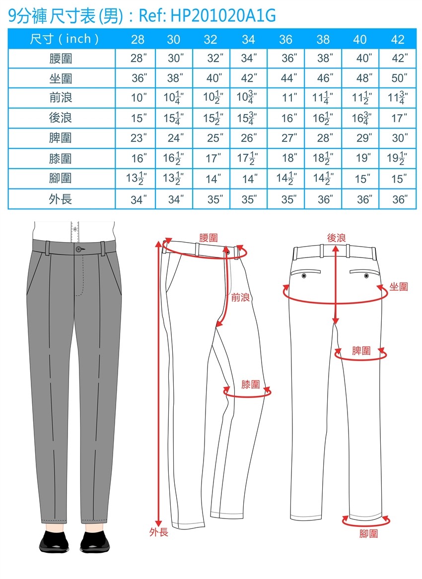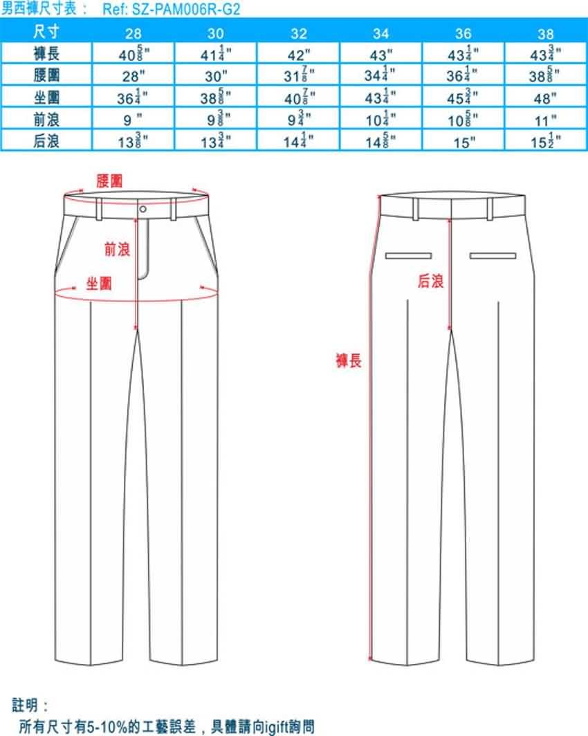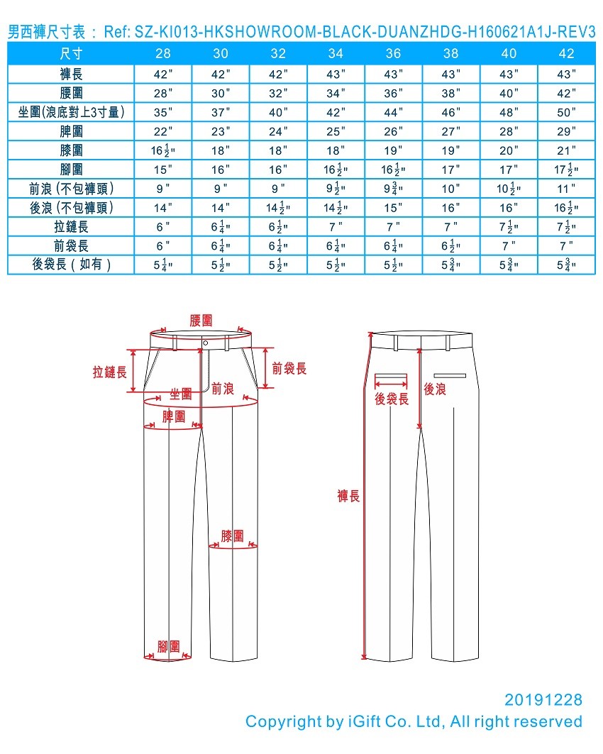 男西褲尺寸表:Ref:SZ-KI013-HKSHOWROOM-BLACL-DUANGZHDG-H160621A1J-REV3