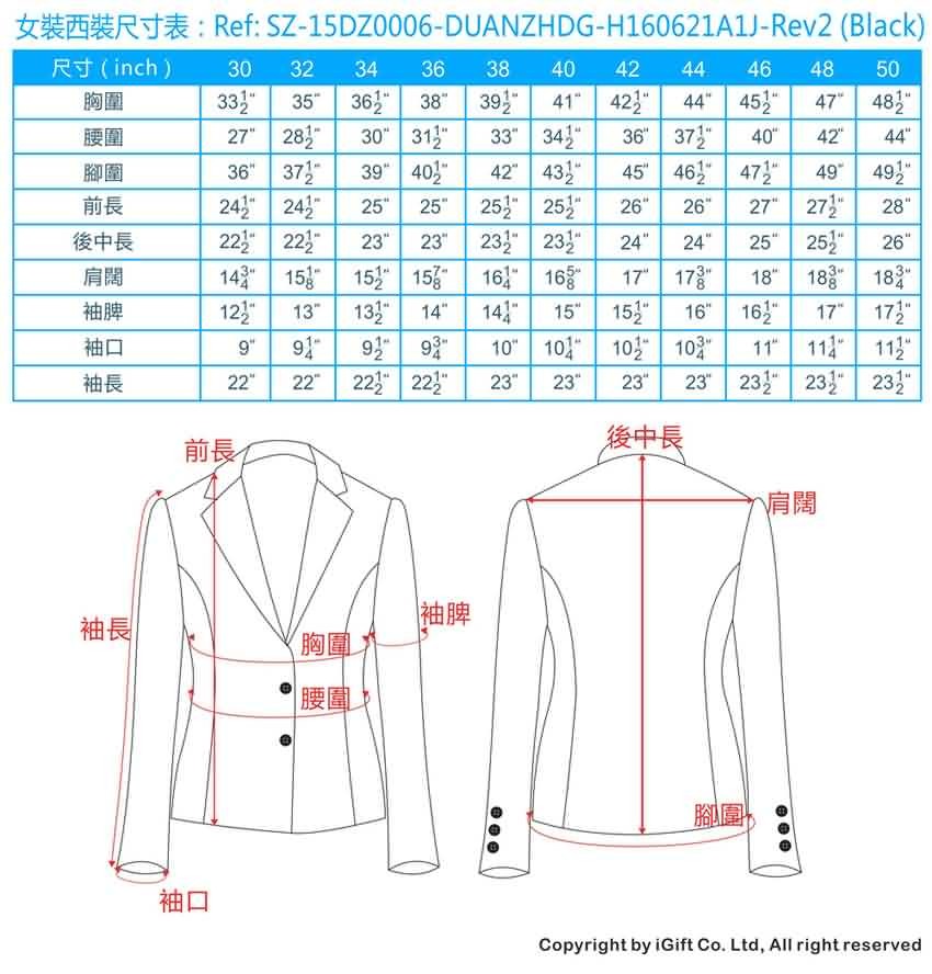 女裝西裝尺寸表:Ref:SZ-15DZ0006-DUANZHDG-H160621A1J-Rev2(Black)