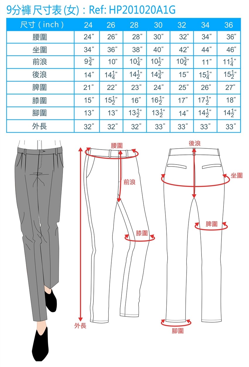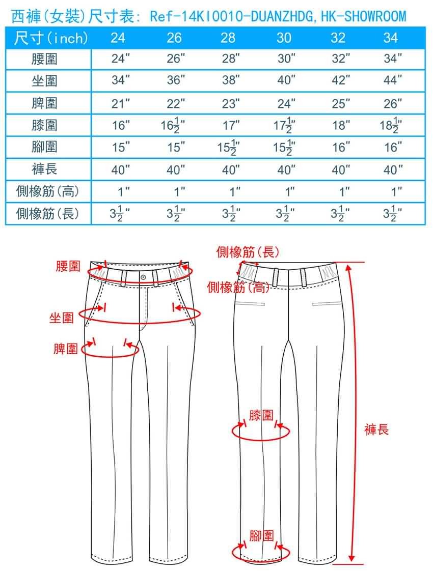 西褲(女裝)尺寸表:Ref-14KI0010-DUANZHDG,HK-SHOWEOOM