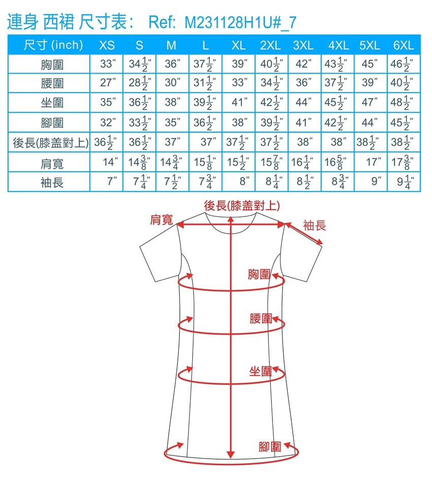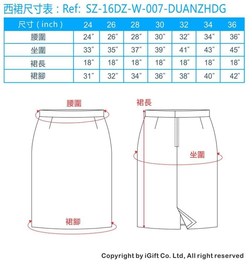 西裙尺寸表:Ref:SZ-16DZ-W-007-DUANZHDG