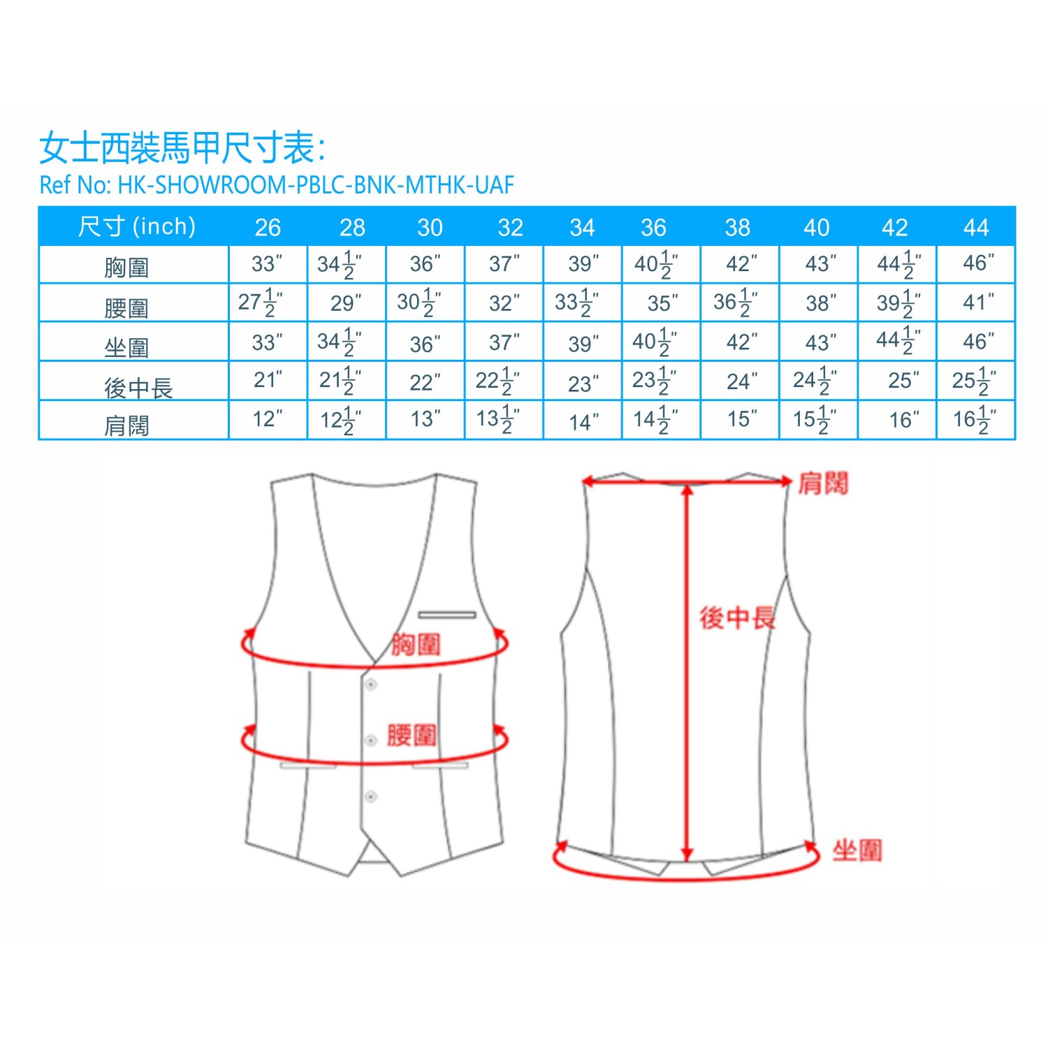 女士西裝馬甲尺寸表:Ref NO: HK-SHOWROOM-PBLC-BNK-MTHK-UAF