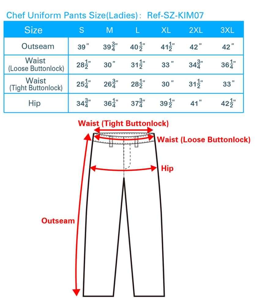 2.Male Chef pants Dimension