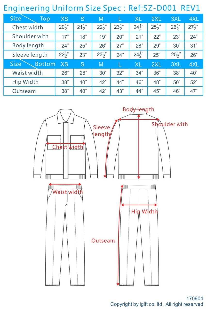 Short Sleeve Engineering Uniform Size Spec : Ref : H200904A2MH_1-1![]()