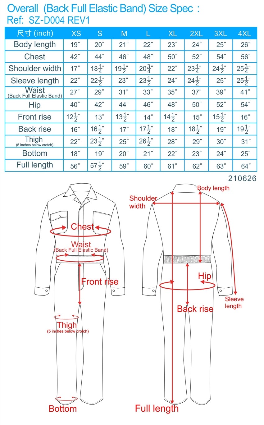 Overall (Back Full Elastic Band)Size Spec:Ref:SZ-D004 REV1