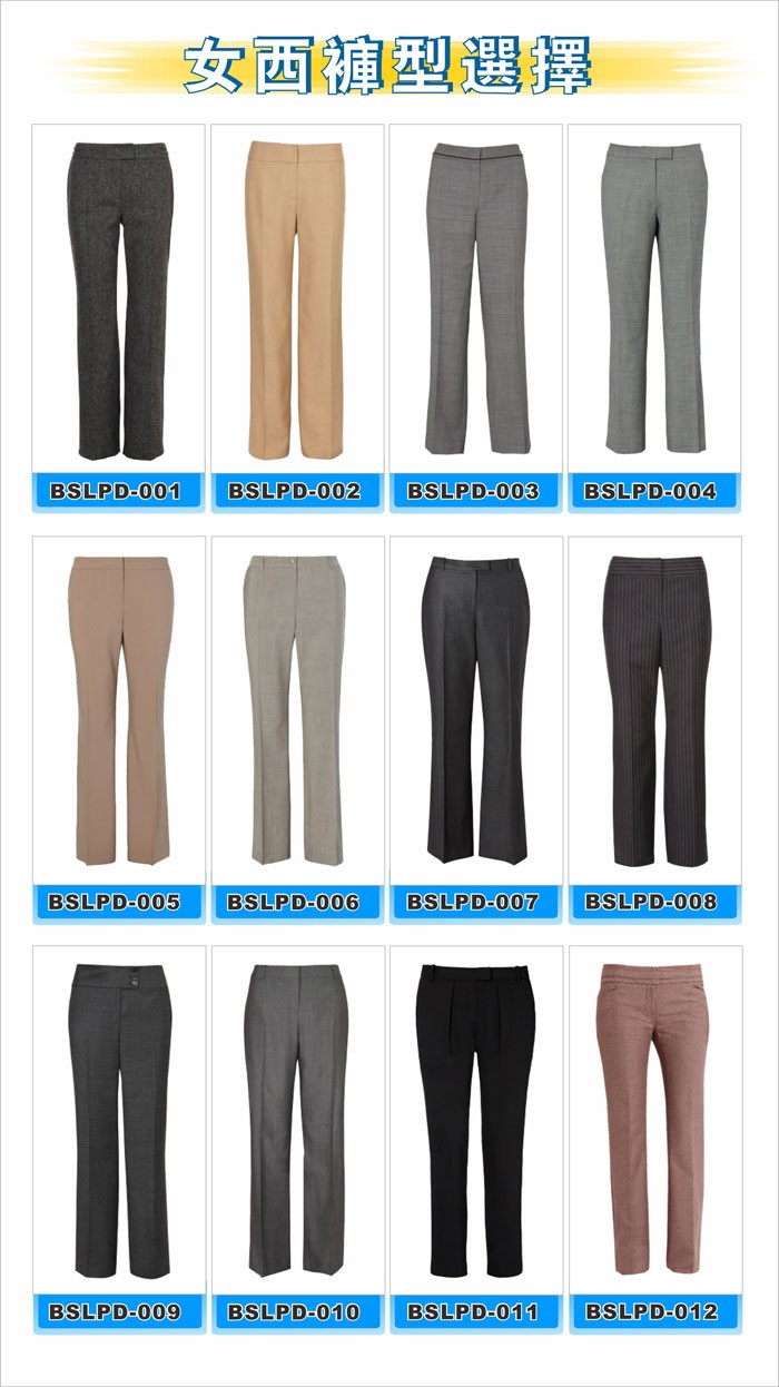 女西褲型選擇 BSLPD-001 BSLPD-002 BSLPD-003 BSLPD-004 BSLPD-005 BSLPD-006 BSLPD-007 BSLPD-008 BSLPD-009 BSLPD-010 BSLPD-011 BSLPD-012
