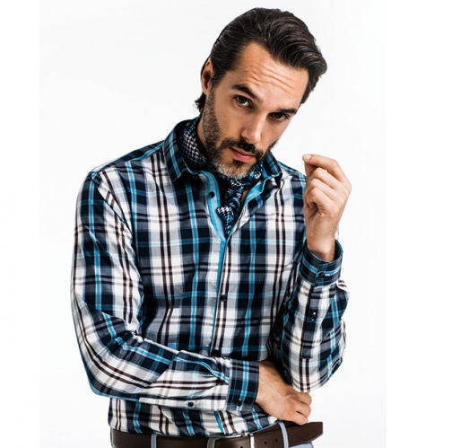 搭配領巾後恤衫嘅鈕請如圖一樣,只解開第一粒鈕,頂多兩粒鈕喇。如果解開三粒鈕或三粒以上,咁就顯得太流裡流氣喇,理由好簡單,多解開鈕會隨時讓你的領巾變鬆而唔似樣,一則唔保暖,二則顯得太坦胸做作唔識打扮,尤其再著上西裝更加係要注意恤衫嘅鈕。