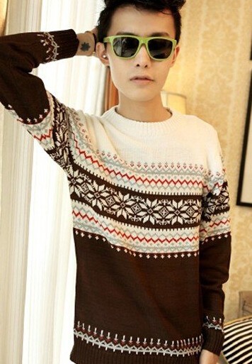 秋天針織衫勁流行,呢款係以深啡色做主色嘅針織衫,用白色時尚圖案做裝飾拼接,特別係心口以上嗰大塊白色針織布料,勁襯到啲皮膚又白又滑溜啊,下身揀條深色牛仔褲,輕鬆著出小男生嗰種清新feel。