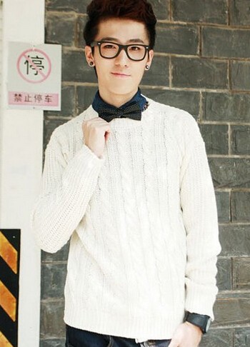 白色款嘅冷衫,精緻嘅針織款式設計,襯返條牛仔哈倫褲,等啲90後嘅男仔大玩時尚韓國風,令你行喺潮流嘅尖端。