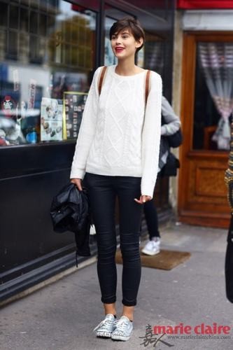 冷衫嘅襯法其實好簡單易學,街拍達人呢一身casual牛仔褲加平底帆布鞋,再襯件粗冷織冷衫嘅look,係咪睇落又舒服又潮呢?呢種白色基本款係2012秋冬最IN嘅新款冷衫 ,即刻同短髮紅唇嗰種親切感夾到爆。