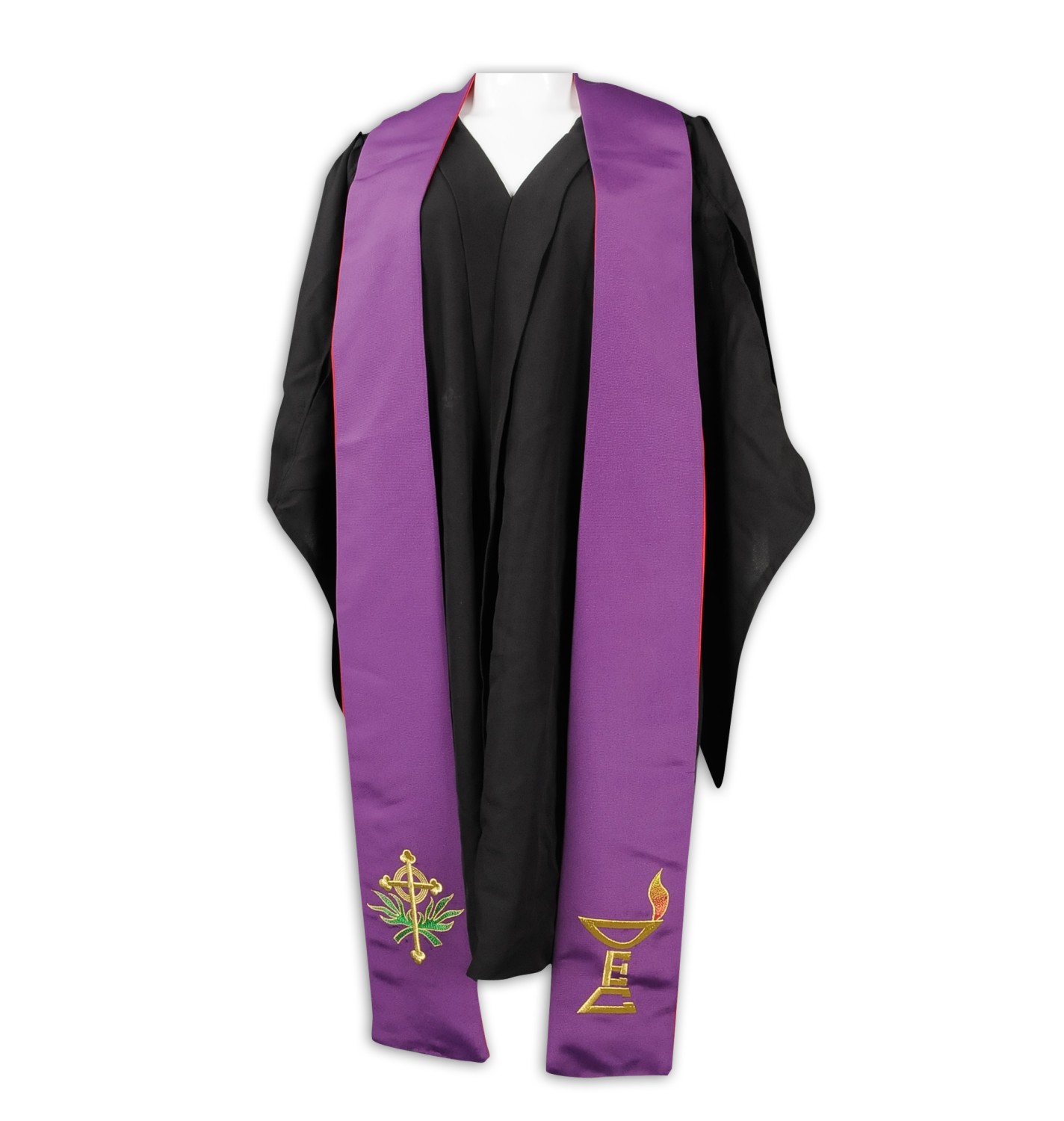 - 領巾/聖帶 (Stole):圍在頸上、垂在胸前嘅長條形飾布。聖帶通常會用上代表教會節期嘅顏色(如紫色、紅色、綠色、白色),或印上十字架等宗教符號,為簡潔嘅詩袍增添色彩同象徵意義。