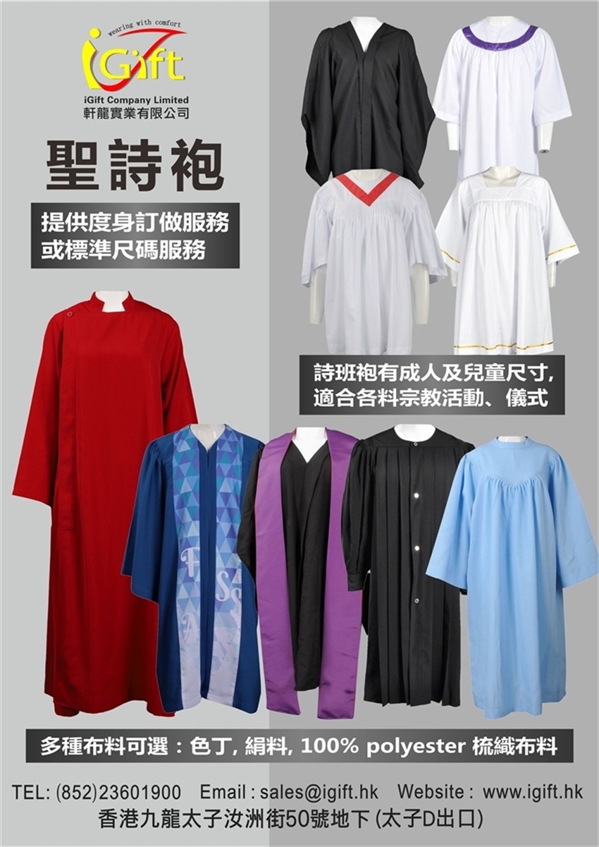 #聖詩袍香港 #訂做詩袍 #教會詩班袍 #兒童詩班袍 #牧師袍 #浸禮袍 #聖袍訂製 #詩袍布料 #iGift聖詩袍 #香港教會制服