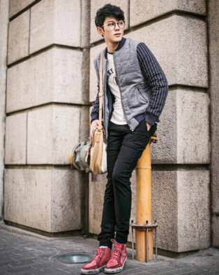 如果上面嘅風格比較適合外向嘅男仔,咁接下來小編就推薦一個適合內向男生嘅配搭。可以揀一件袖位有條紋設計嘅灰藍色棒球褸,配搭一件簡單嘅字母T恤同埋一條黑色休閒褲。重點係揀一對紅色嘅鞋去提亮整體色調,成個感覺散發住一股濃濃嘅書卷氣,沉靜、優雅又有自信,絕對符合你嘅品味!