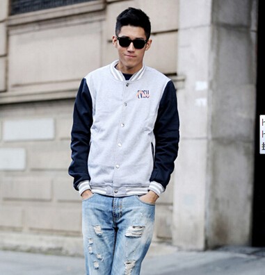 小編建議男仔可以選擇款式比較簡潔嘅棒球褸。例如呢款有幾個特別字母做點綴嘅棒球褸就係一個唔錯嘅選擇。袖用深藍色同淺灰色拼接,非常大氣。再配上一條淺藍色嘅爛牛寬鬆版牛仔褲,加頂鴨舌帽,成個造型就非常嘻哈,係咪即刻有種想跳舞嘅衝動呢!