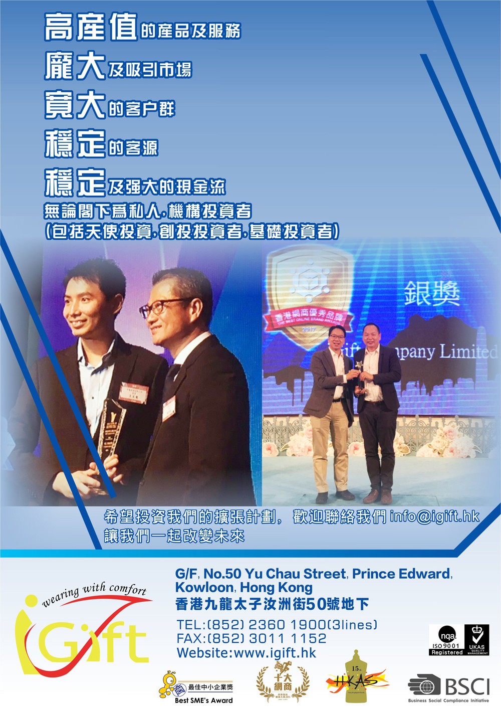 無論閣下為私人, 機構投資者(包括天使投資, 創投投資者, 基礎投資者) 希望投資我們的擴展計劃, 歡迎聯絡我們。info@igift.hk