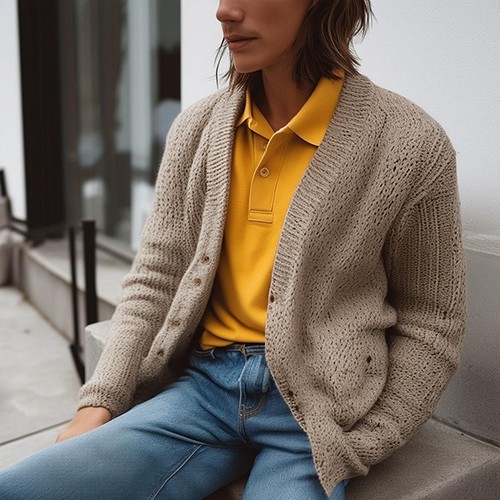 加上夾克或開衫:在涼爽的天氣,將Polo恤衫與一件休閒夾克或針織開衫搭配,不僅增加層次感,也提供額外的保暖。