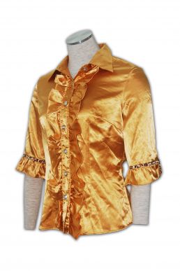 這款時尚的黃色制服上衣,採用 高品質緞面 製成,觸感柔軟舒適,光澤度極佳,散發出優雅的氣質。 純色 設計,簡約而不失華麗, 反領 的設計,更顯得幹練精緻。 中袖 的長度,既能展現女性的優雅,又不會過於正式,適合各種場合穿着。