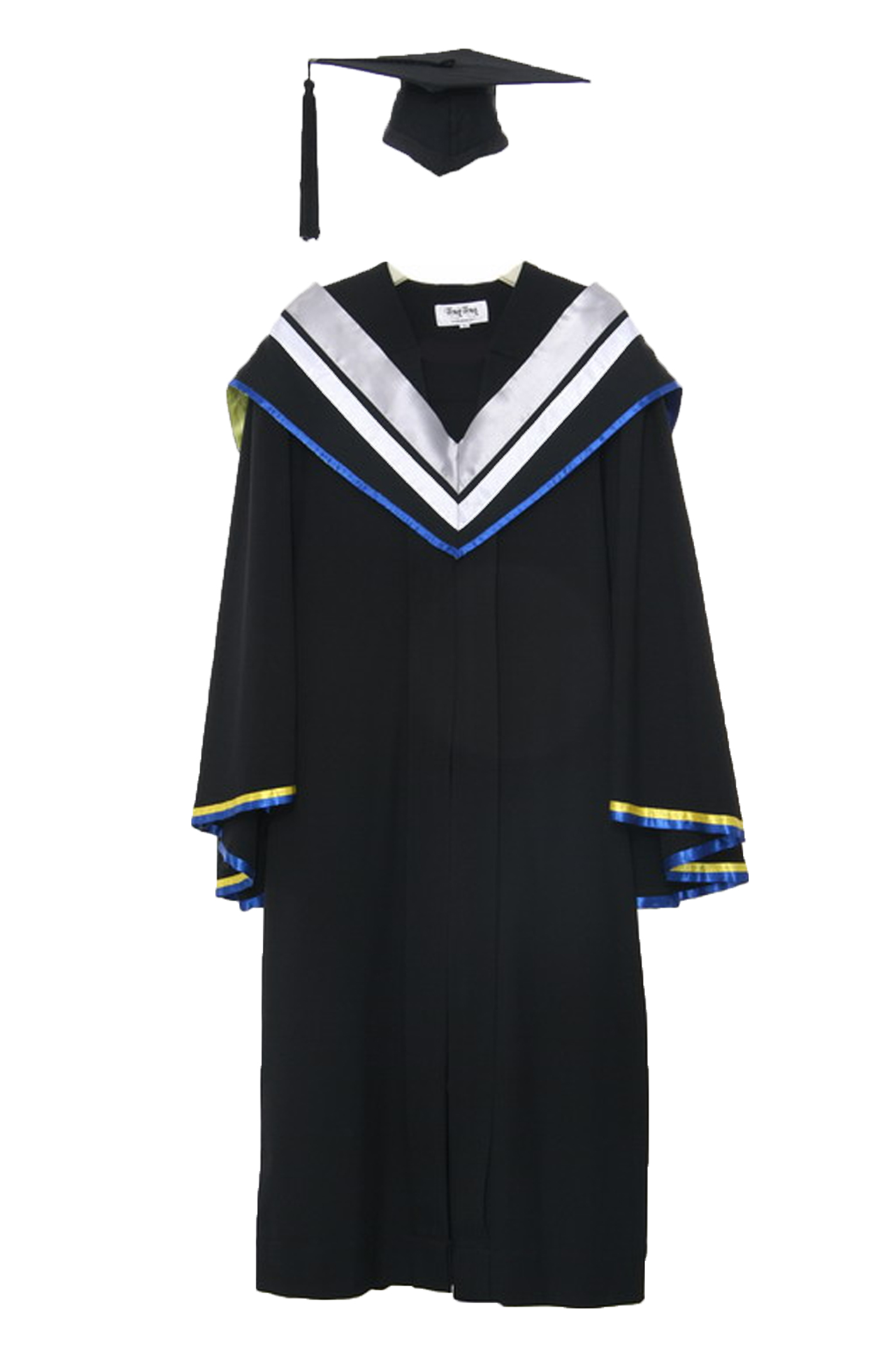 - 細節: 袍身採用經典學士服設計,袖口綴以藍色和金色雙色滾邊,更顯莊重典雅。