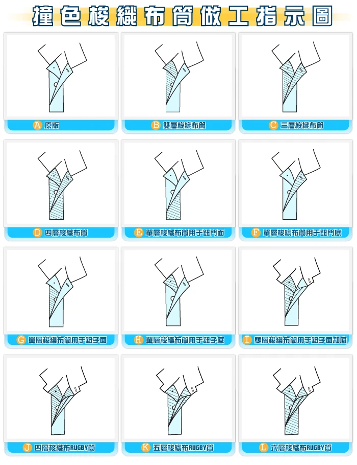 客人可以用眾多不同顏色的布料來製作, 而且可以選不止一種布料進行訂製, 客人更可以使用多款不同布料拼布來製作同一件。