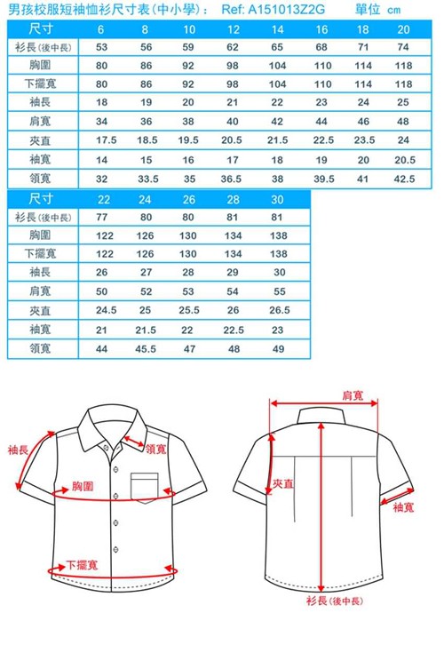 尺寸表:(此處展示部分校服尺寸參考,其他請點擊:校服尺寸選擇)