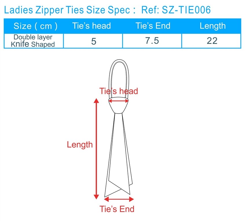Ladies Zipper Ties Size Spec :Ref:SZ-TIE005![]()