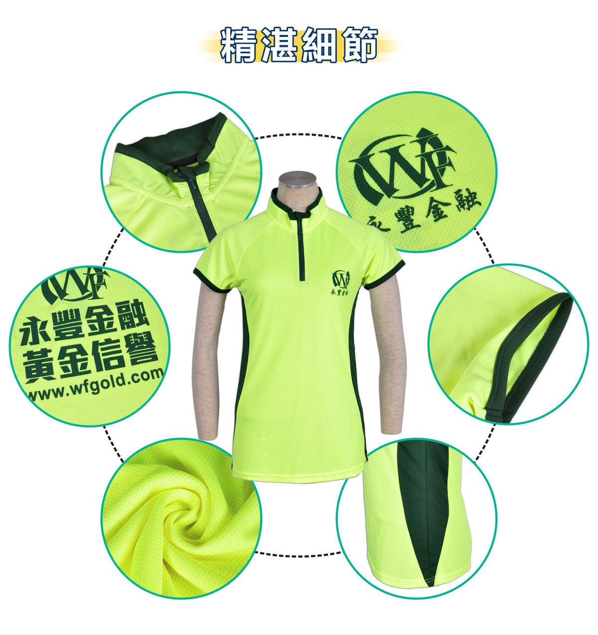 P449訂做女裝polo衫 半胸拉鏈 訂購螢光polo短袖 poloshirt供應商HK 螢光綠